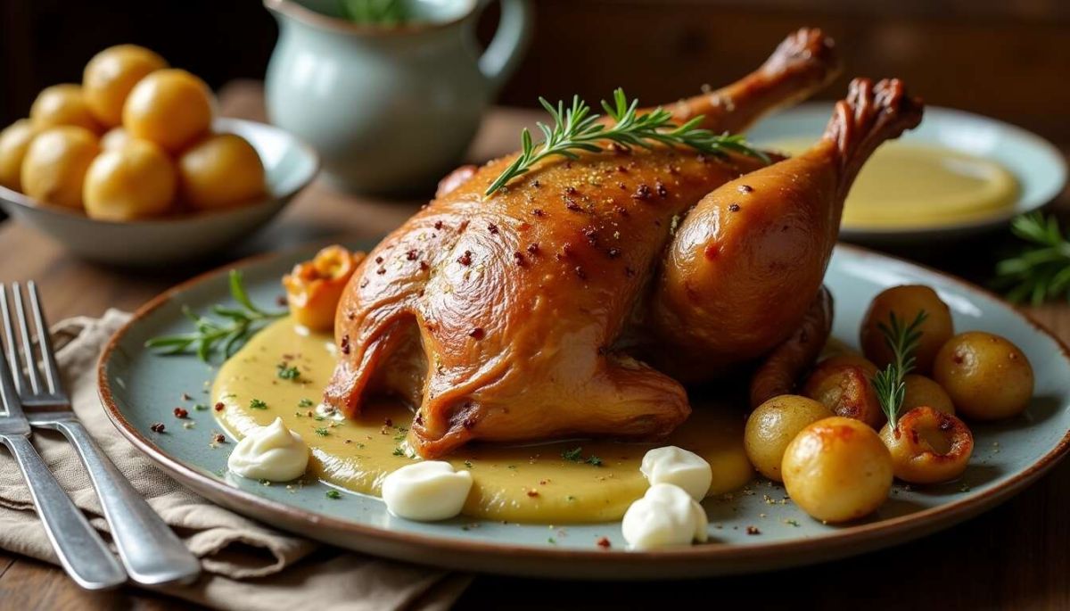 Le faisan rôti à la crème de girolles et pommes de terre constitue un plat d'exception, mariant la tendresse de la volaille à la finesse des champignons. Idéal pour les grandes occasions, il saura charmer vos convives grâce à cette recette détaillée.