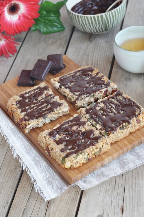Pour finaliser ces bouchées, faites fondre des morceaux de chocolat au bain-marie. À l'aide d'une cuillère, recouvrez chaque carré de chocolat fondu et laissez durcir. Ces bouchées de granola sont à la fois savoureuses et pleines d'énergie, idéales pour les collations.