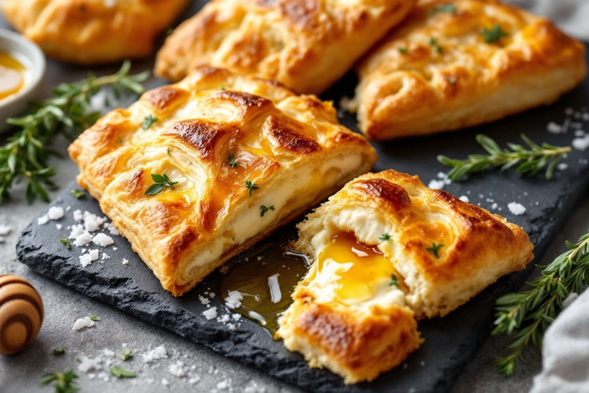 Un équilibre subtil entre le fromage crémeux, le miel et le thym donne à ces feuilletés une touche méditerranéenne.